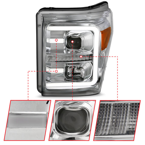 ANZO 11-16 Ford F-250/F-350/F-450 Projector Headlights w/ Plank Style Switchback Chrome w/Amber