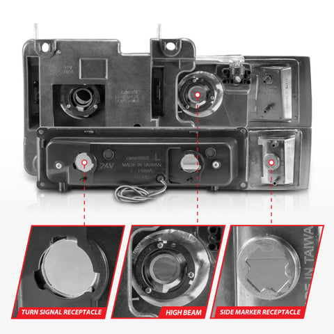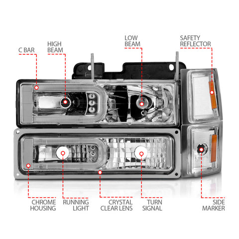 ANZO 88-98 Chevrolet C1500 Crystal Headlights w/Light Bar Chrome Housing w/ Signal Side Markers 8Pcs